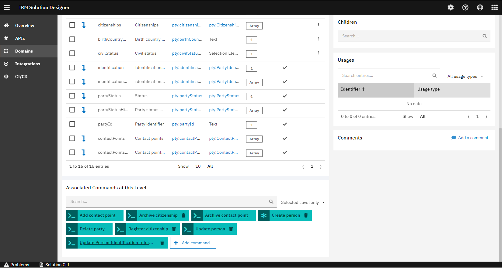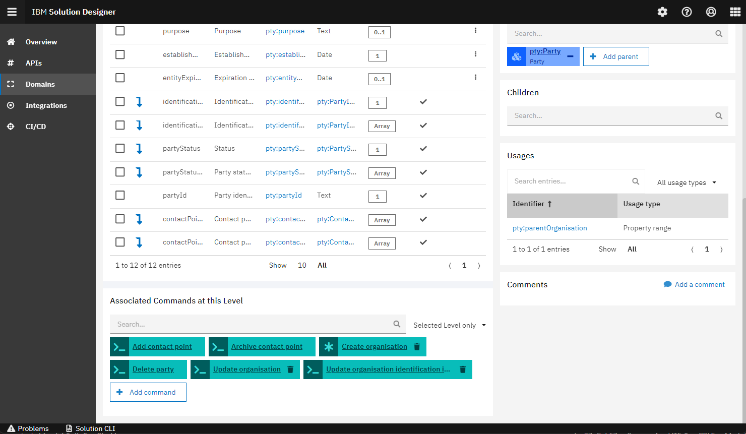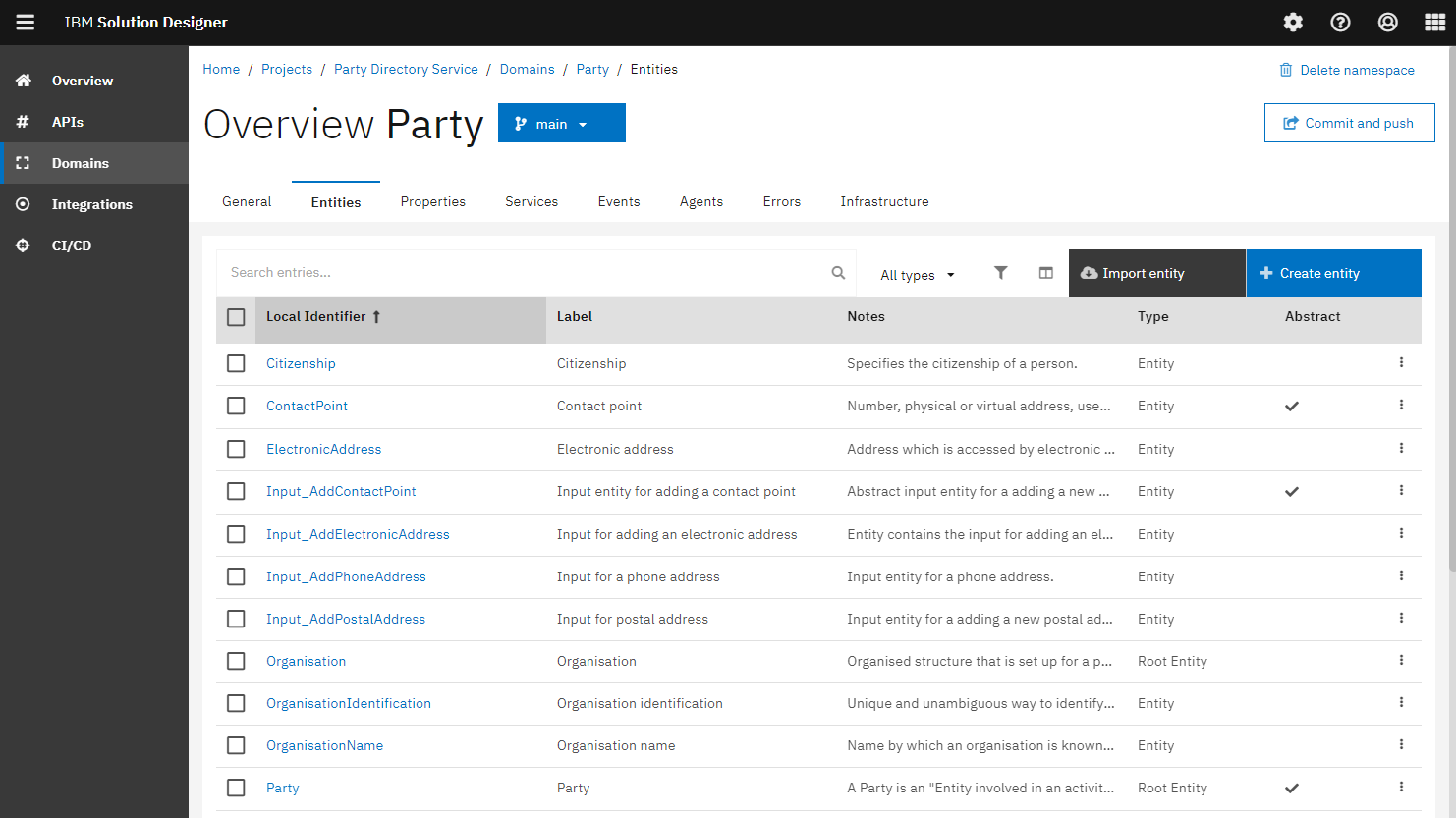 By taking the reference from the above UML, Jack and Alexander have designed and built the service in the tool. As mentioned in the previous services, the tool provides the three layers API, domain and integration namespace that make the service functional. The Party Service has been designed with multiple namespaces which covers different information around the party.