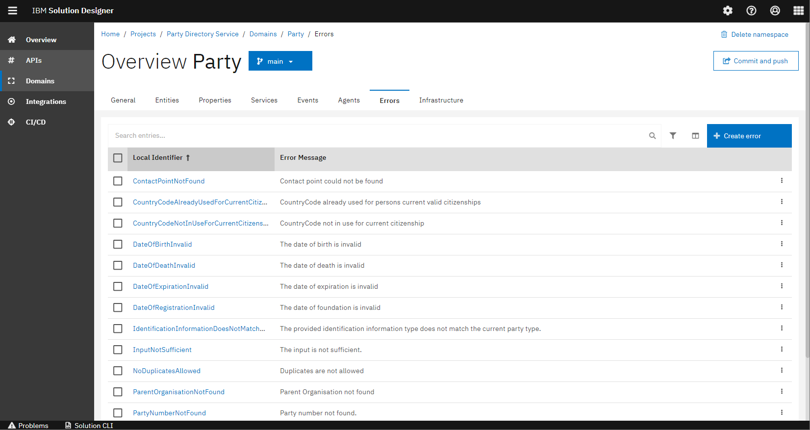 Alexander modelled all the errors based on the logic of the previous entities and events. The following are the errors designed in the Party Service.
