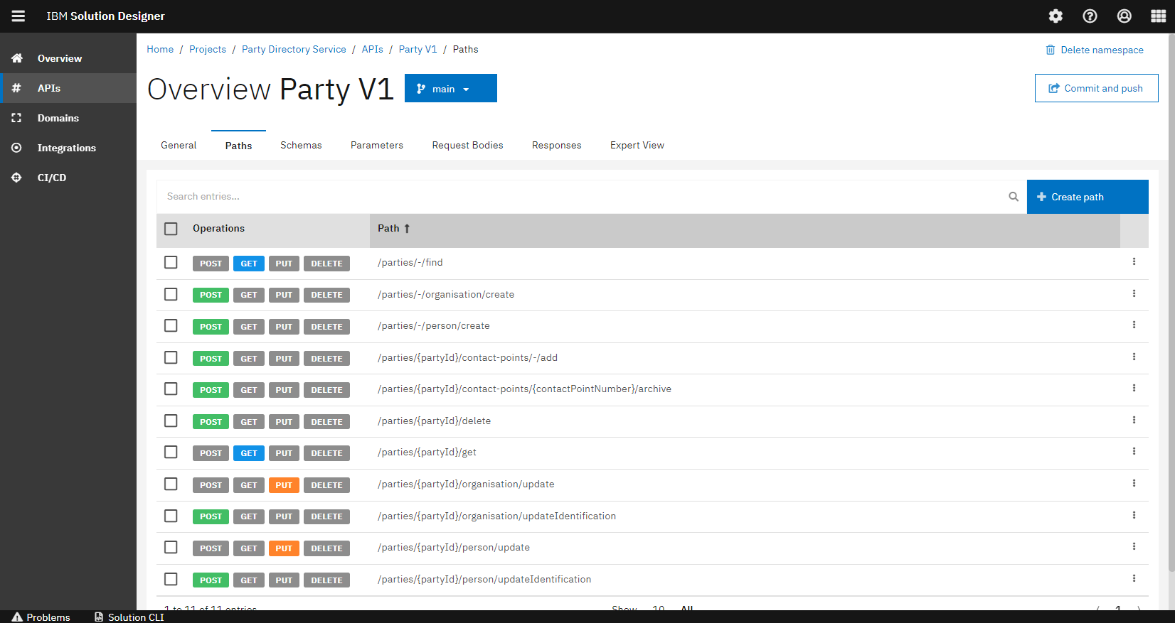 Alexander designed several paths which can be performed as part of the API in the Party Service. Paths are typically provided as endpoints for APIs. For each path, multiple operations can be created to perform the desired action based on the HTTP verb.