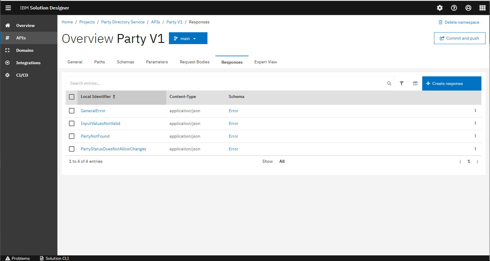 Integration namespaces are used to consume other REST APIs. For the Party service, no external API has been integrated.